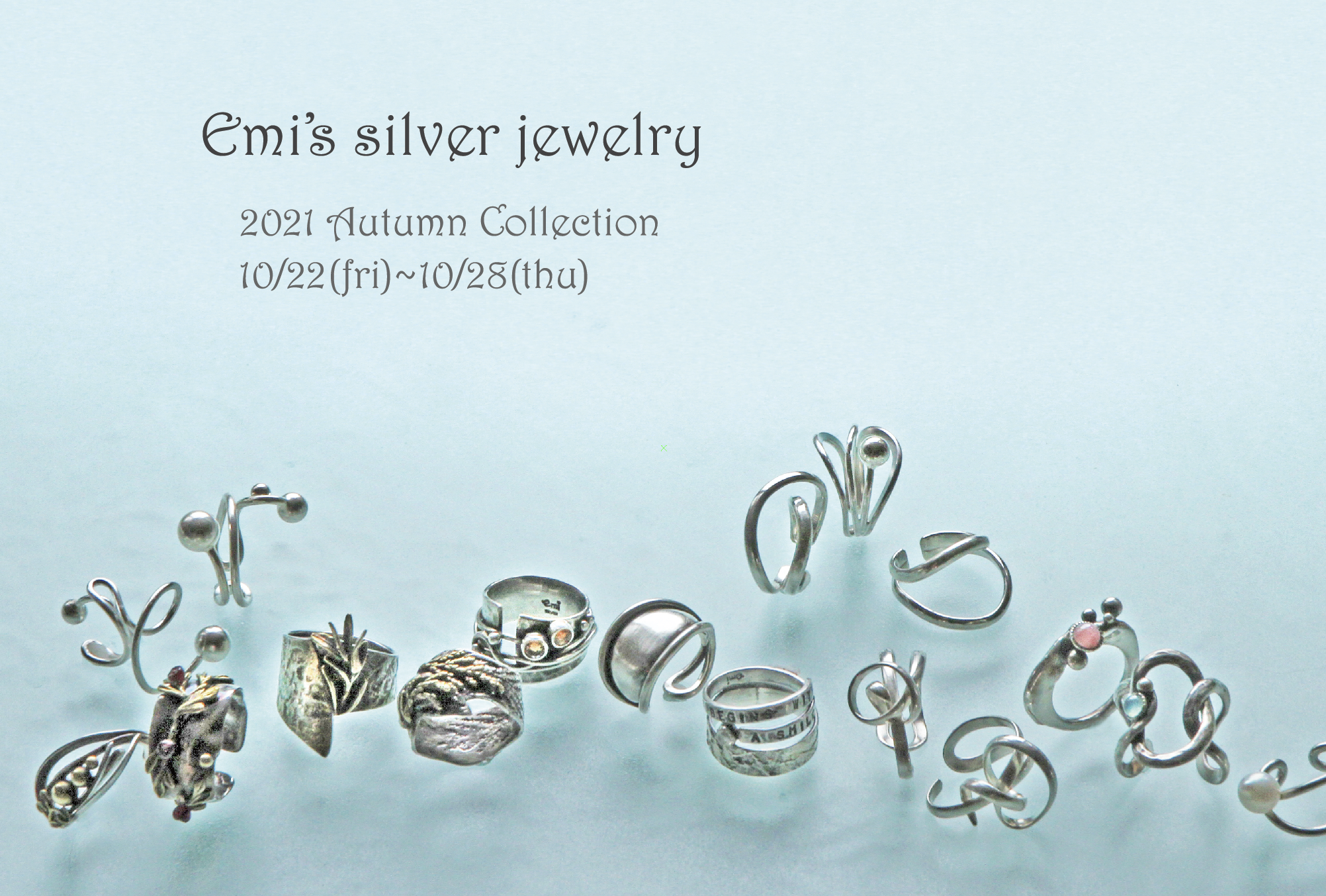 2021年10月11日 / 最終更新日時 : 2021年10月11日 juice お知らせ 個展のお知らせ 〒600-8009 京都市左京区四条通室町 東入函谷鉾町101 LAQUE 2F ノリエム ミニギャラリー 今岡えみ Art Silver Jewelry 展 10月22日(金)〜10月28日(木)